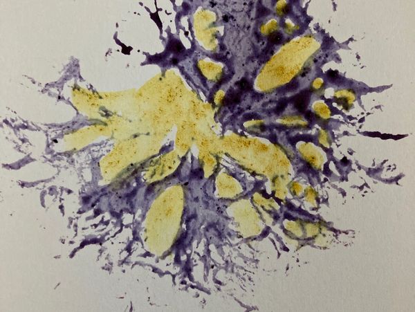 Lichen print made from home made blueberry juice and turmeric powder with water added.